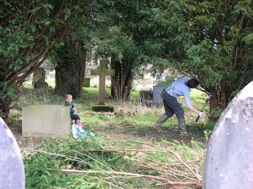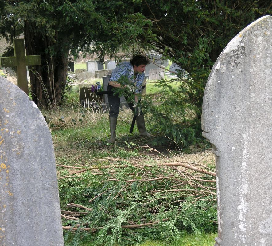 Just had a super morning helping to clear up the Churchyard. There were about 10 of us getting stuck in, the yew has been well pruned & now the cross has been revealed, providing a lovely vista from the path.