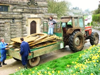 The Tissington Well Dressings are a fantastic tradition, something to be proud of, a part of our heritage which is all too often being eroded. Today for me was Day 1 – a very easy one. I joined some of the other Parwich Ladies who are involved in other wells at Communion at Tissington Church led by Christopher to celebrate the preparation for the Well Dressings. Afterwards we retired to the village hall for a wonderful cooked breakfast. Work for the Wells has been going on for days, with boards being soaked in the pond, clay puddled and designs drawn. The final boards were lifted today & taken to a “secret” location so that we can begin early tomorrow.