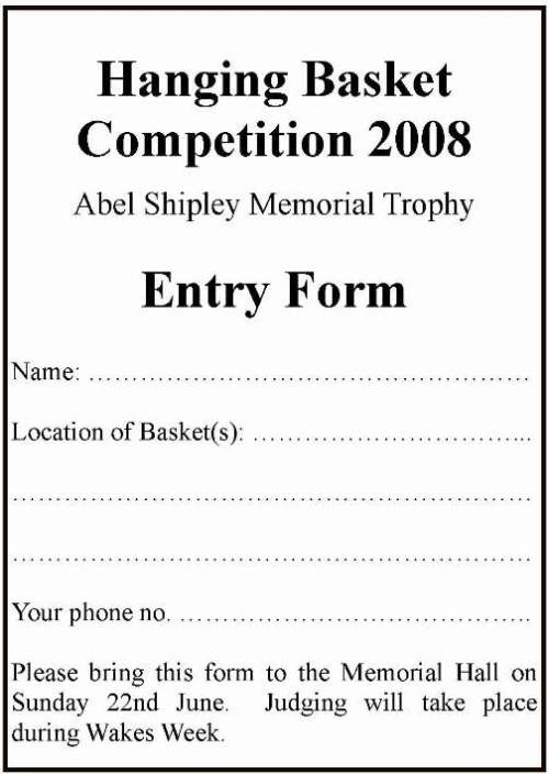 If you are putting up any hanging baskets do think about entering them for the Abel Shipley Memorial Cup. With the weather, judging will be a bit early, but everyone will be affected equally: