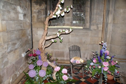 I have just come back from the flower festival in the church, completely bowled over by the beautiful displays, the wonderful scent of roses, soothing background music and – of course – the welcoming coffee and delicious home made cakes.