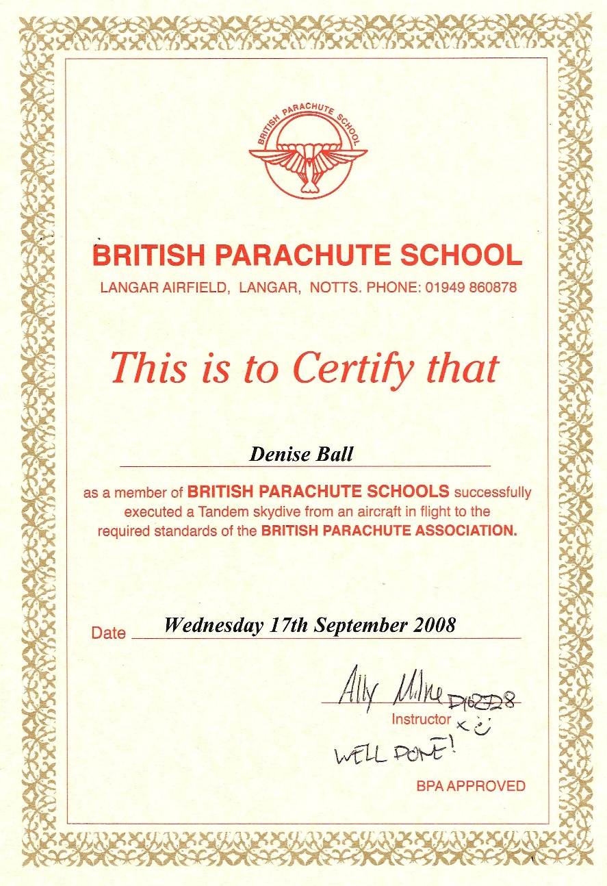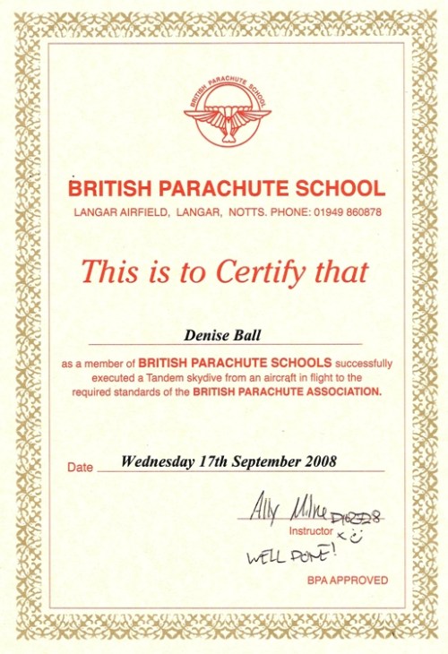 If you cast your minds back to July, many of you will have filled in Sponsorship Forms for Denise’s Skydive in aid of the Derby City General Hospital Breast Cancer Clinic.