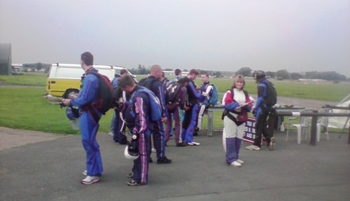 Since then a combination of dreadful weather and domestic problems intervened to make a jump impossible, but on Tuesday 16 September we were told that Wednesday weather would be ideal – we should get there as early as possible. So we turned up at 10.30 – only to find mist and a very low cloud-base which would make tandem jumps for starters unsafe. The day went on and on.