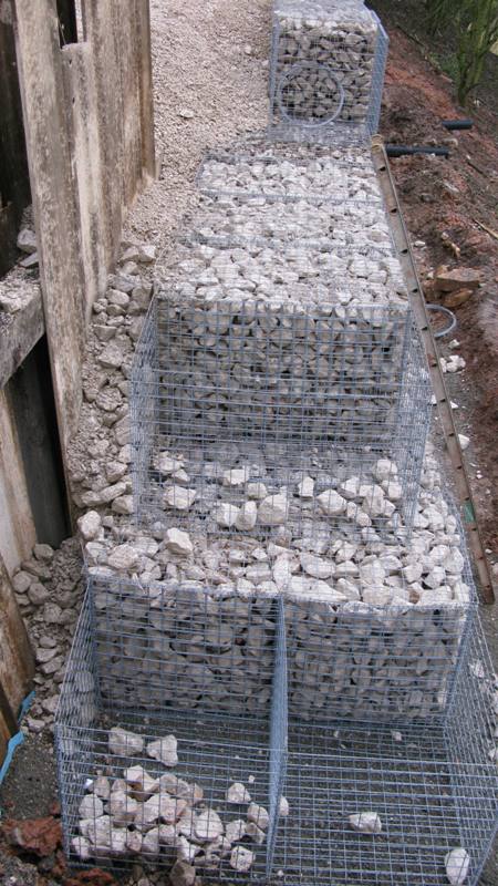 The original slip the gabions are 3 high in places with drains.
