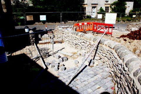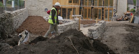 The dry stone walls have been going up around the site over the past few weeks, with the hard landscaping nearing completion.