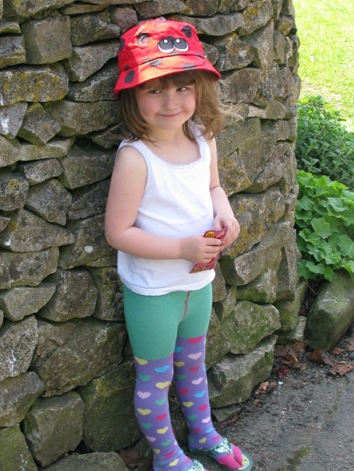 Tilly with her ladybird hat looking very much like summer is here.