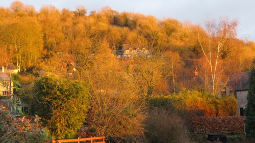 I took this photo at 8.30 this morning, a glorious sight to wake up to on Christmas morning; the sunlight bouncing off the trees on Parwich hill.