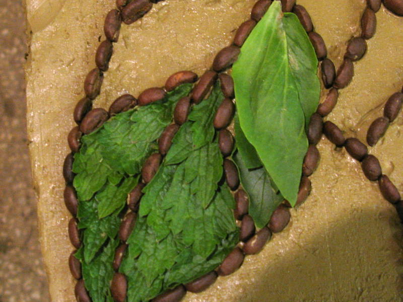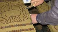 The clay has been well puddled but somehow some quite large stones have escaped Edward’s quality control and rise to the surface as you are positioning the coffee beans. Sometimes the edge of the clay collaspes and emergency repairs are needed; out comes the plastering trowel.