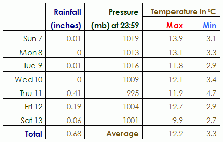 Incidentally, I recorded the first air frost of the autumn this morning (Sunday 14th), with a recorded low of -0.4 degrees C at 8am.