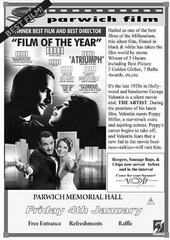Catering4Parwich will be serving Burgers (£2) and Sausage baps (£1.50), along with chips, tea, and sweets for the children. Come and have your Supper before the film showing! Or in the interval.