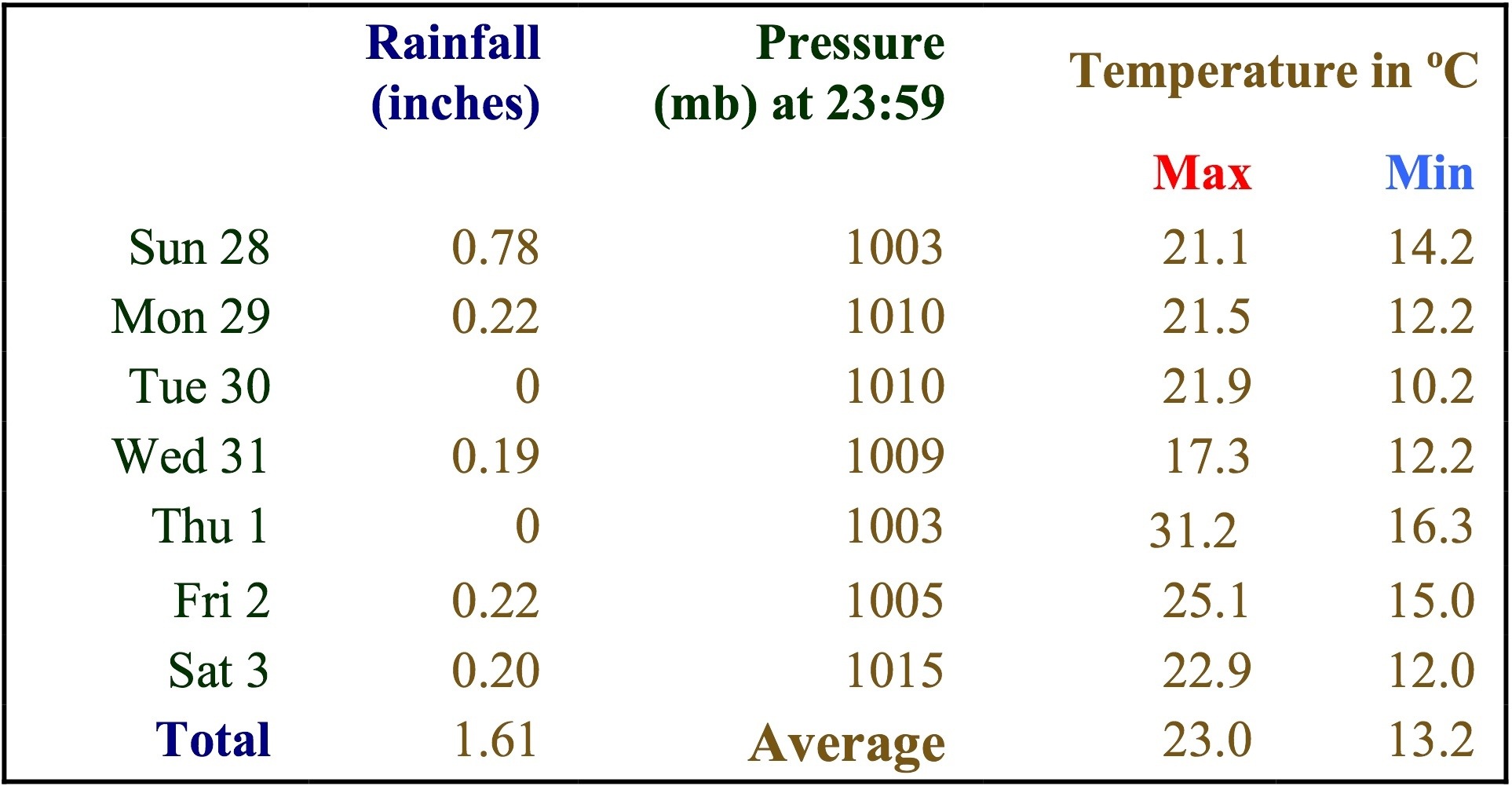 Our Weatherman in the Village says: