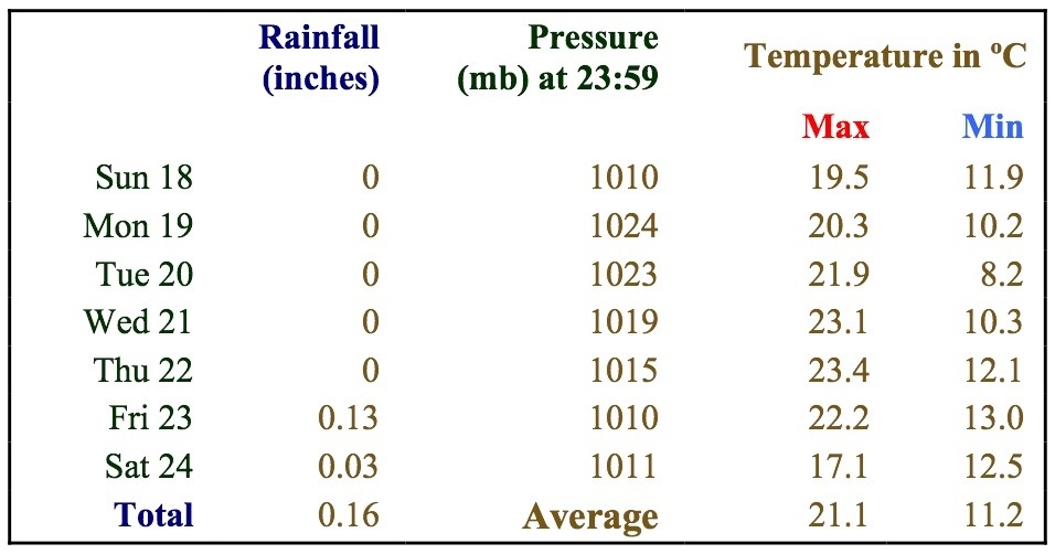 Coming to an end of a very good summer, the weather continues to be kind, although there is a distinct feel of the impending change of season. Looking forward this week the forecast looks reasonably good with the dry conditions looking like continuing to the end of the working week.