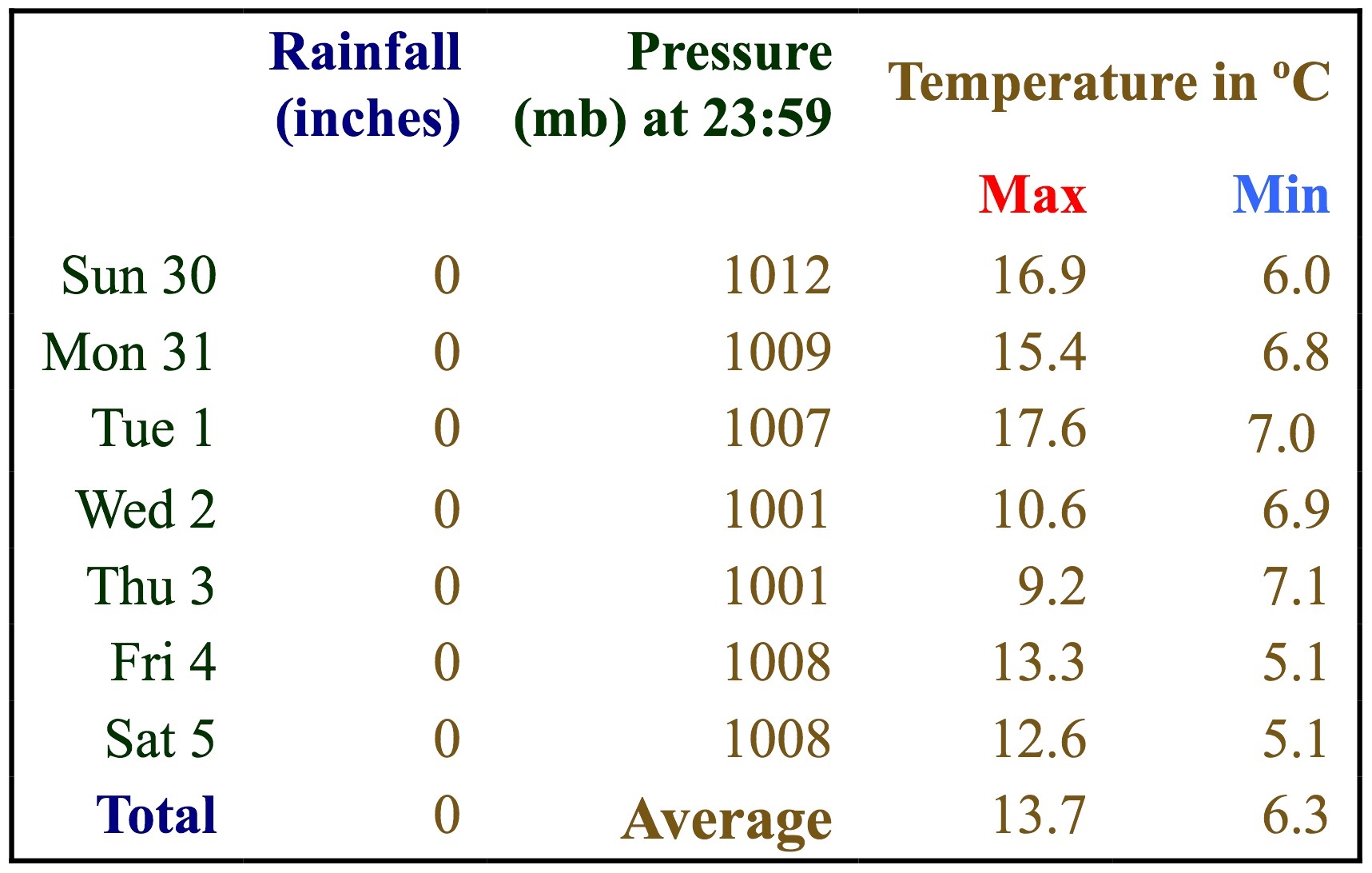 On inspecting the data for last week, it seems I might have a problem with the rainfall recording, so please treat rainfall data with suspicion. Hopefully I will get the opportunity to check it next weekend or over Easter.