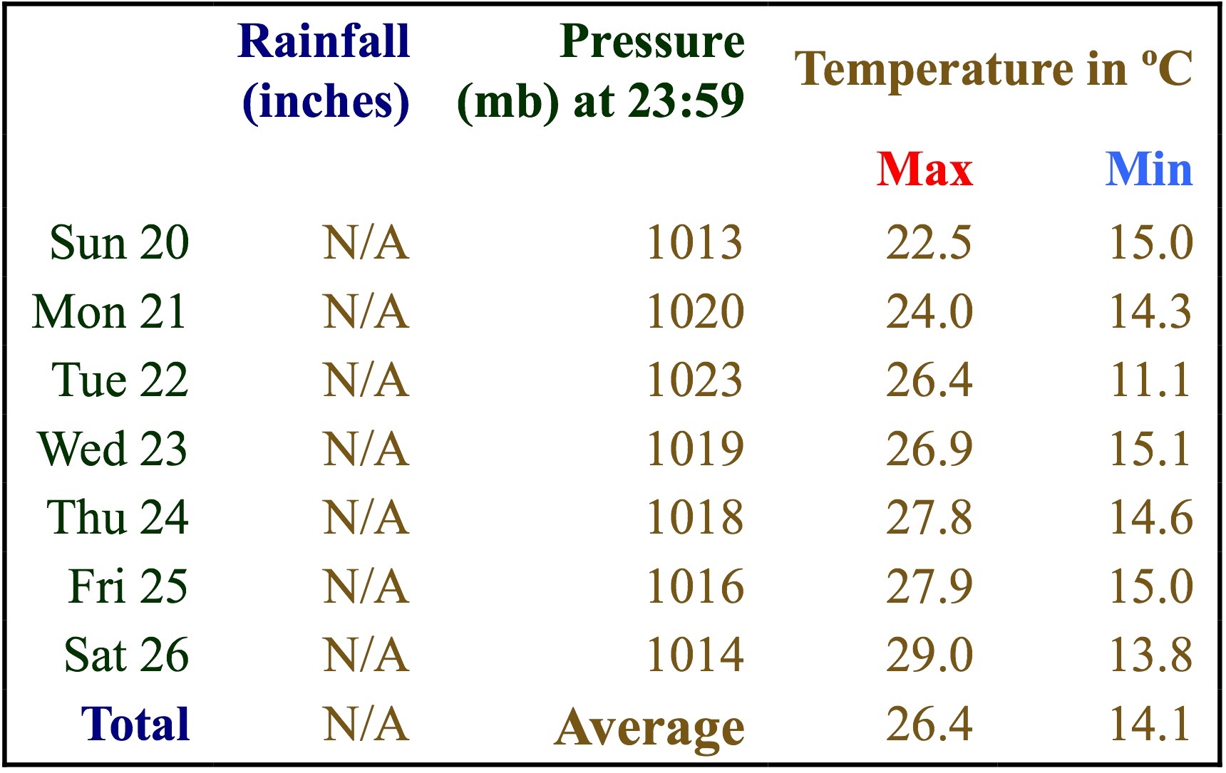 Our Weatherman in the Village says: