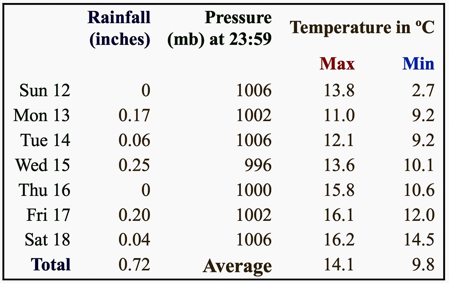 Our Weatherman in the Village says: