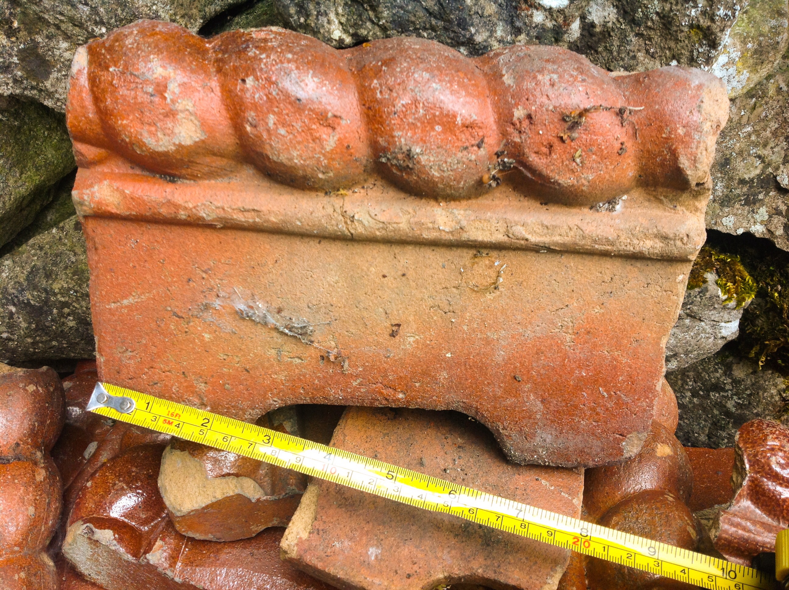 For collection some complete and broken (aprox 50 complete) Victorian saltglazed garden edging tiles, 9 inches long.