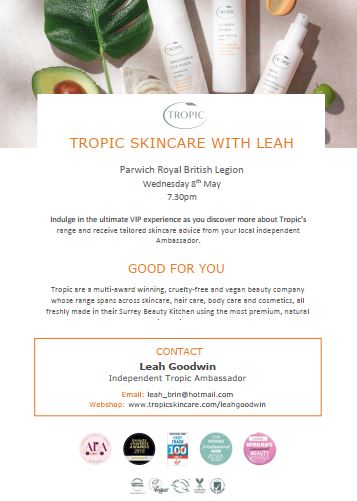 Tropic Skincare with Leah, the Legion, 8th May