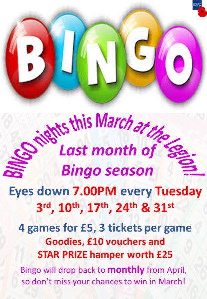 March Bingo at the Legion – Cancelled