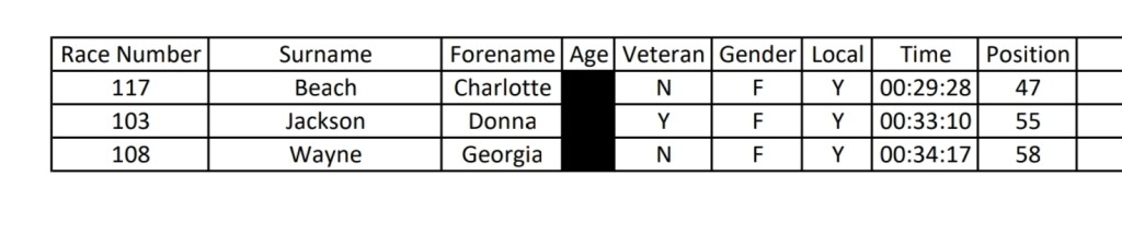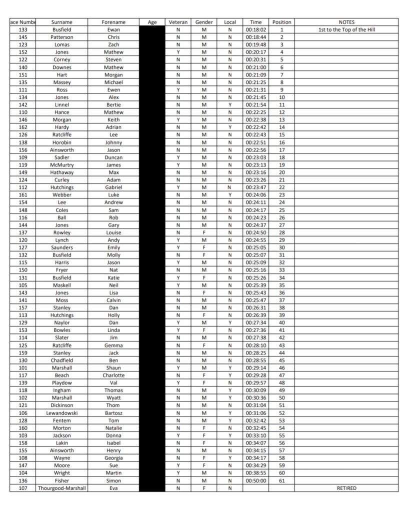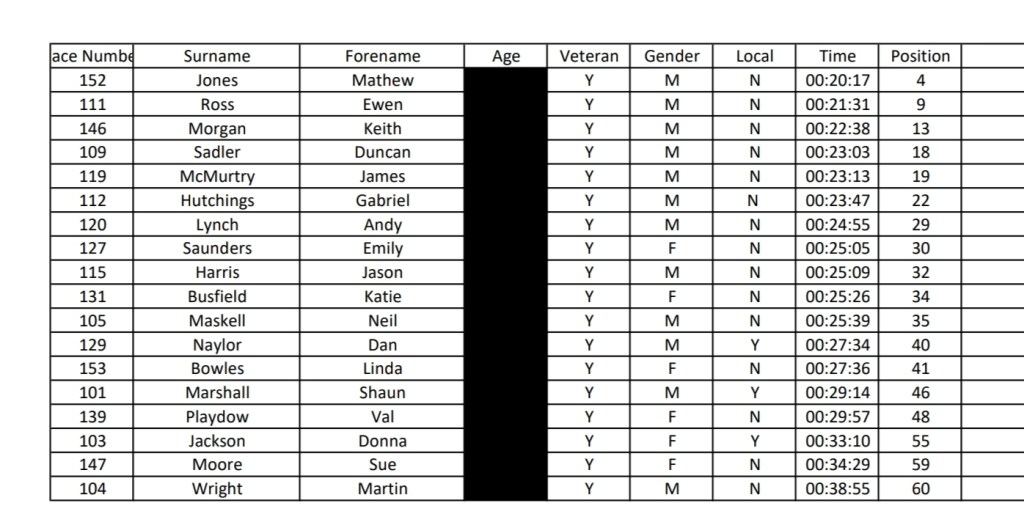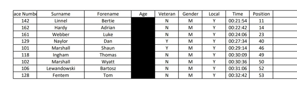 A massive well done to everyone who ran in the rain. Here are the results and categories. Full results..