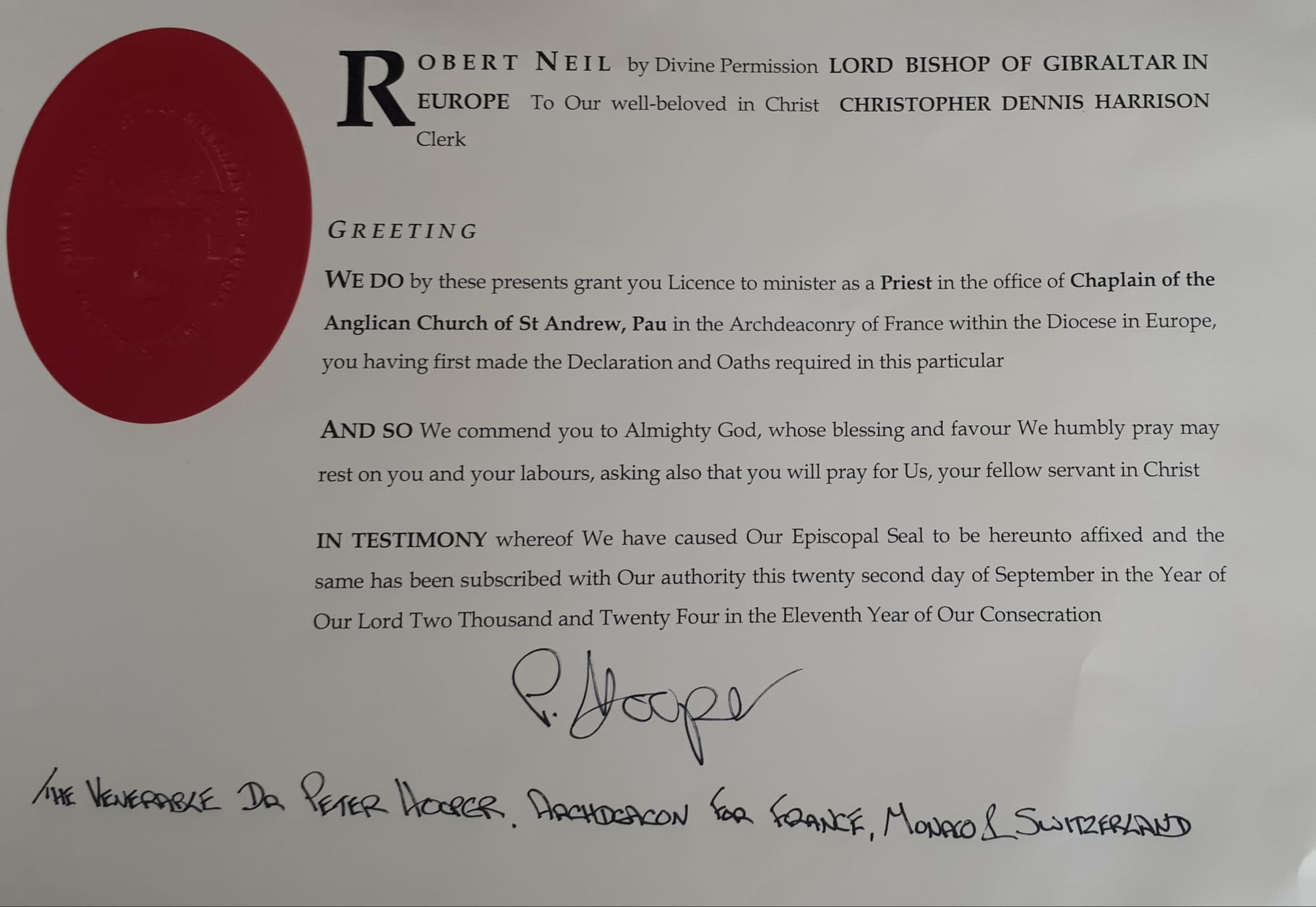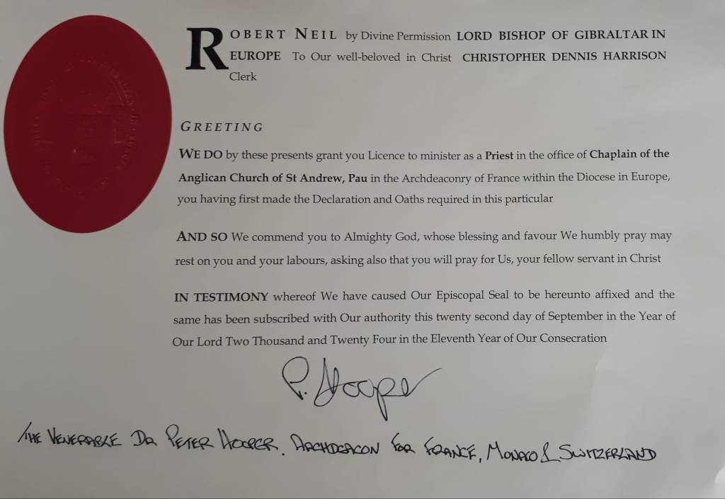 Christopher Harrison, a former vicar of Parwich, retired from his parishes of St Peter’s and All Saints in Nottingham and is now the chaplain of St Andrew’s in Pau, south west France in the shadow of the Pyrenees. Christopher was licensed in a service on Sunday 22 September and he and his wife Eva appear already to be settling in judging by photos of wine, cheese and a single malt whisky francais, “Ouiski Heppell”. Photos and screenshot below. Richard T