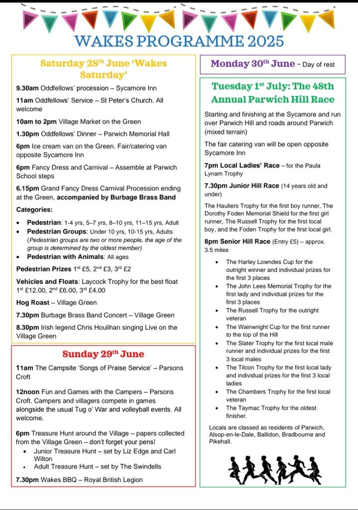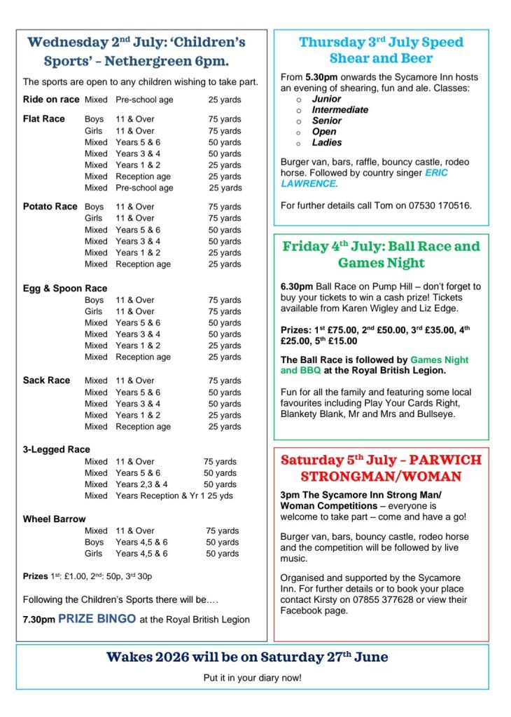 The fun and games start tomorrow so take a look at the Wakes programme for a full list of all the activities taking place 😁. Heres to a great Wakes 2025. Alternatively you can download the programme: