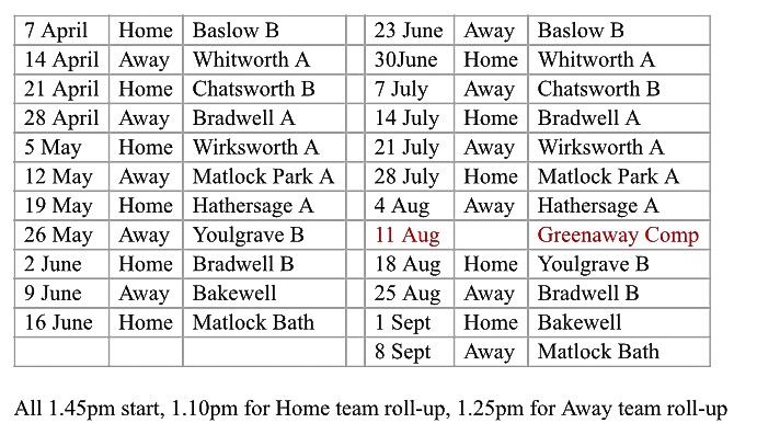 Next match – Away – Bradwell – 31 August – 1.45 pm – Wednesday.- Next match – Home – Bakewell – 1 September – 1.45pm