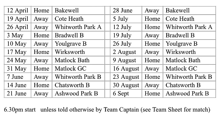 Matlock Tuesday League.