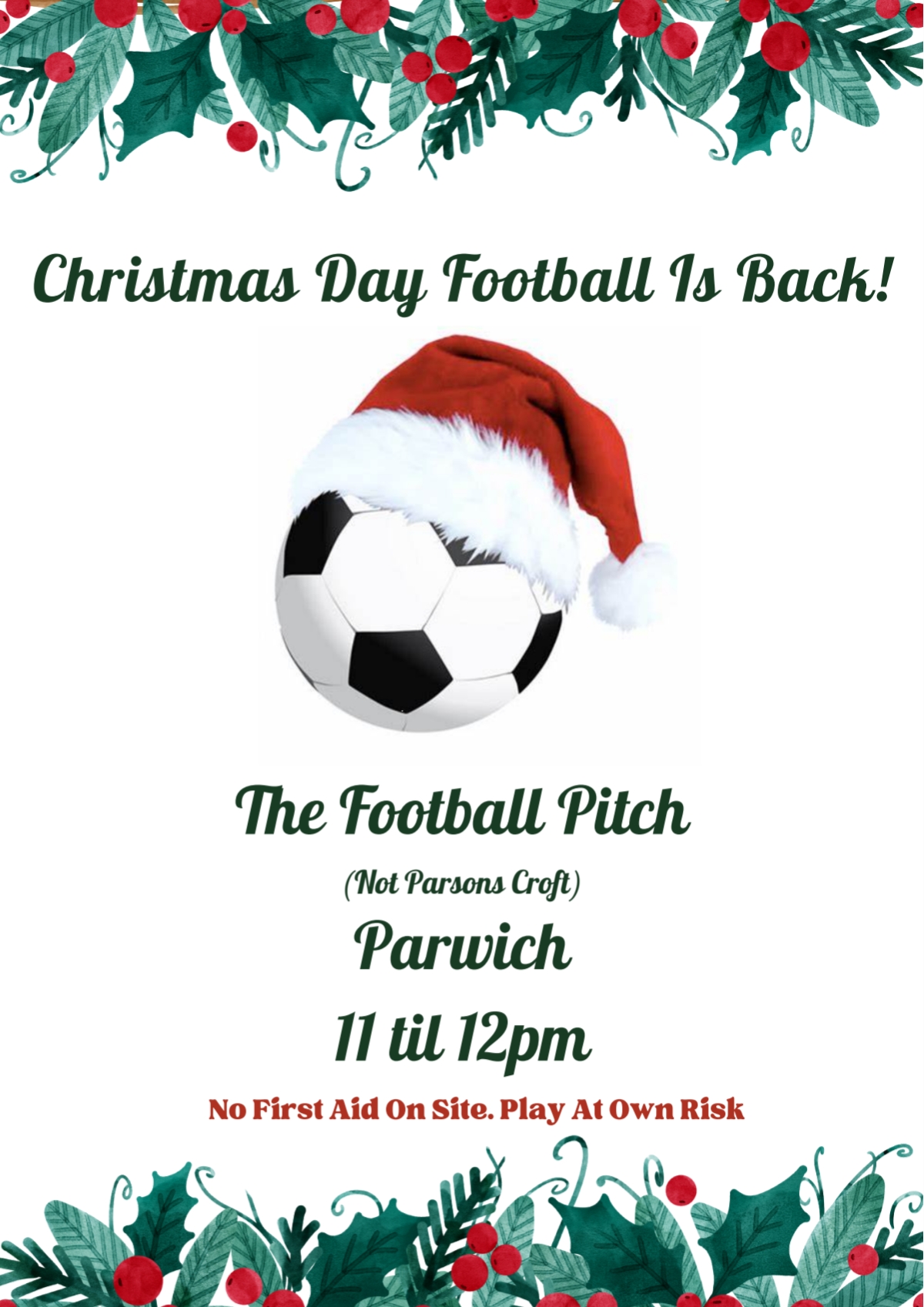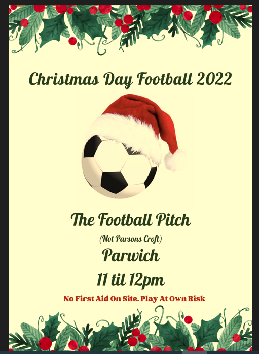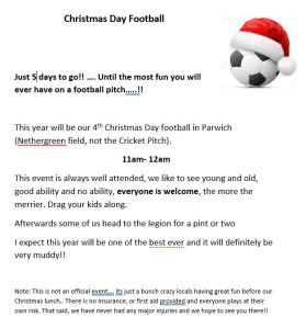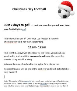 This year will be our 4th Christmas Day football in Parwich (Nethergreen field, not the Cricket Pitch).