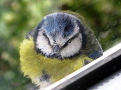 This little blue tit and his mate spend a couple of hours every morning tapping on our window panes. Does anyone know what that’s all about?