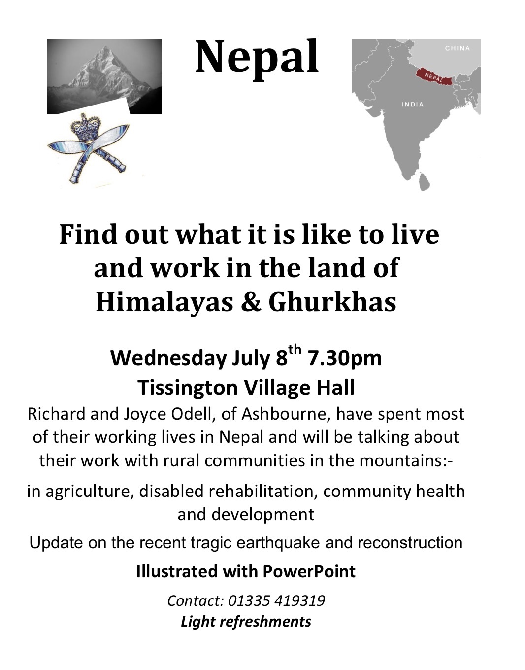 in the Bradbourne Church Hall, entrance fee will be £3 (including refreshments) and all are most welcome, so do please spread the word.