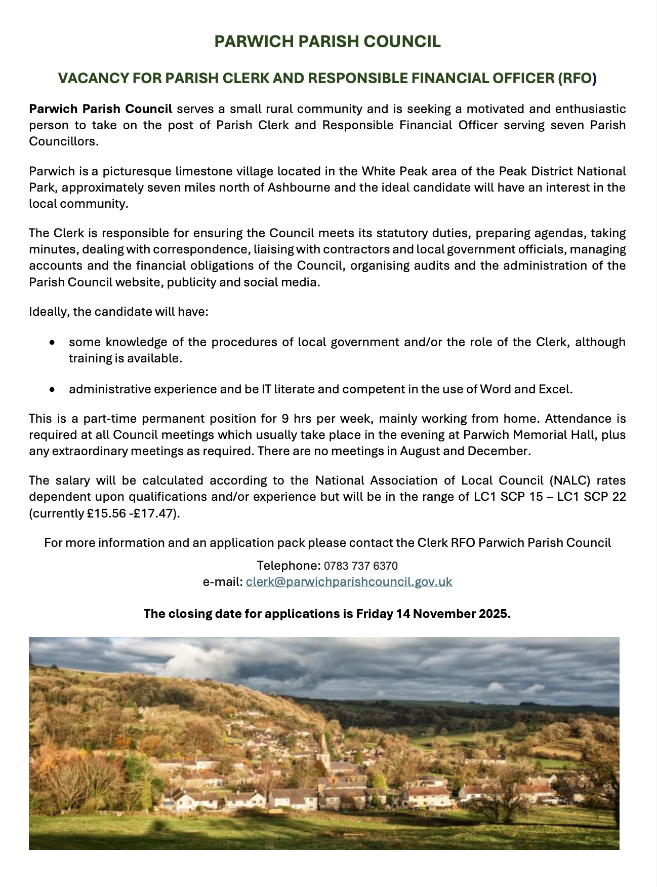 Recruitment of a Clerk to Parwich Parish Council