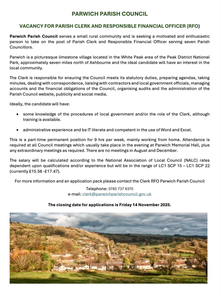 Click this link to read the draft minutes of the meeting of Parwich Parish Council held on the 17th September 2025.