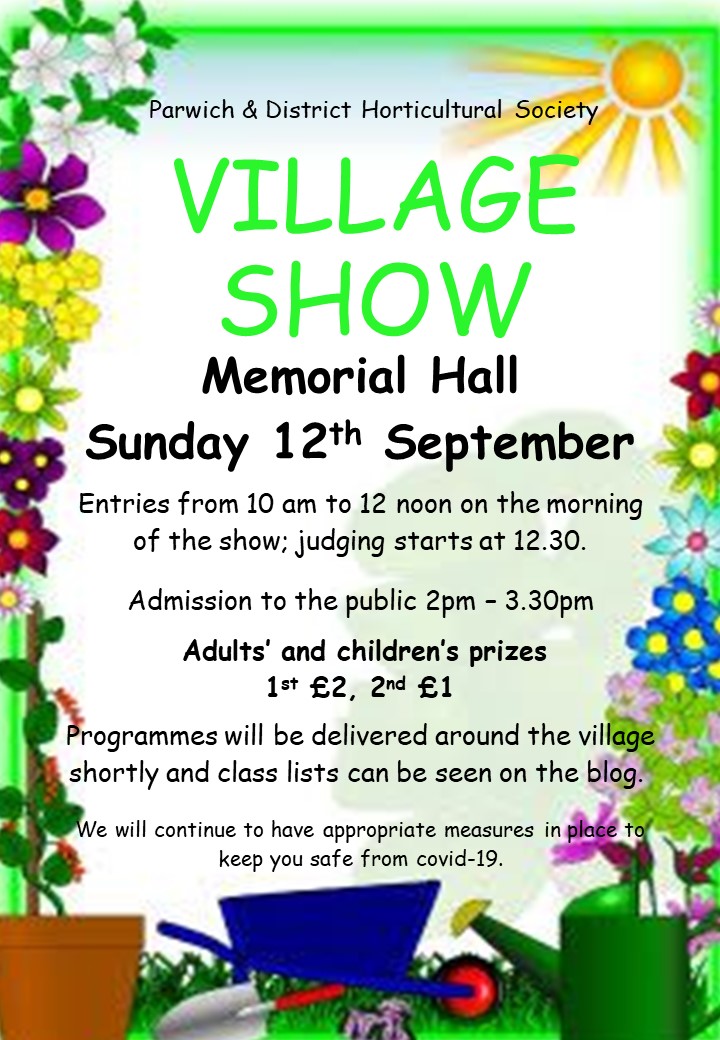 Tomorrow it’s time once again for the PDHS show. Usually the second major PDHS event, first Open Gardens then the Show, with summer sandwiched nicely between them. A chance to show off how kind the summer has been to our gardens, or how skillful we’ve been in mastering whatever the gods have thrown at us, after the early promise of open gardens. Sadly, as we all know, this year is a bit different. The cancellation of Open Gardens was a big blow to the PDHS and the village. You may have seen the note on the Show entry form “Prize money has been reduced to the loss of revenue from Open Gardens this year”. Open Gardens usually brings substantial revenue to the PDHS so this year they will be feeling the loss. But this doesn’t just affect the PDHS and their ability to run trips and events it affects the whole village. Over the years the PDHS have been extremely generous in sharing their funds with other organisations and groups in the village including this blog, so we will all be feeling the pinch. Speaking for the blog, we have annual costs for provision of web hosting, storage, etc which we would struggle to pay without the generous donations we receive from the PDHS.I’m sure other groups will be hit similarly.