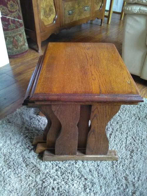 Small tables for sale. One oak nest of three , One oak plant/hall table (old) One chunky lamp table ( heavy, probably Sheesham wood) all good condition, suitable for upcycling £25 each ono. Conact Sandra C 390317