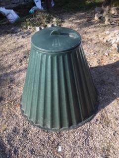 The bin is available from the driveway at Rowan Cottage, free to anyone who wants it. It is 1m diameter at the base, approximately 0.8m high