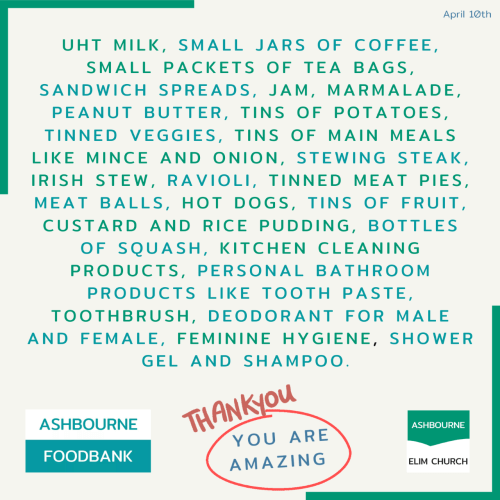 ASHBOURNE FOODBANK thanks everyone for their generosity and support and has said