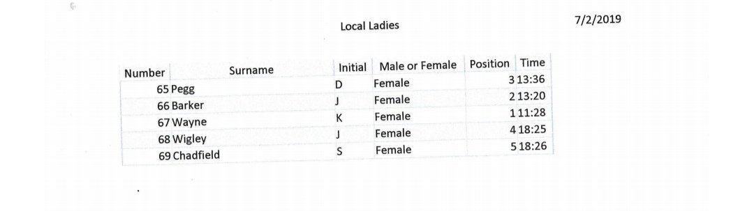 Thank you and congratulations to everyone who took part the results are below…