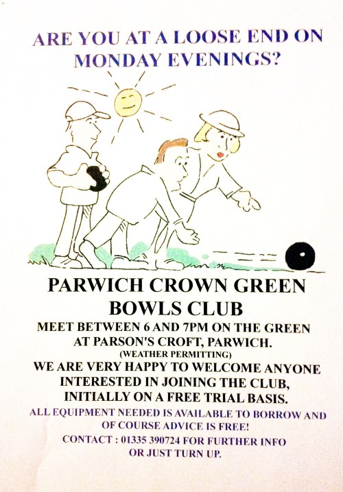 | Mon 29th | 6pm | Parwich Crown Green Bowls Club Practice all welcome |