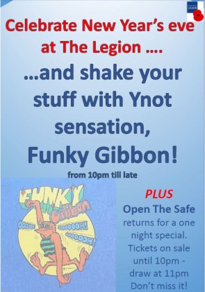 | Mon 31st | tbc | New Year’s Eve @ the Legion inc Open The Safe & Funky Gibbon Disco |