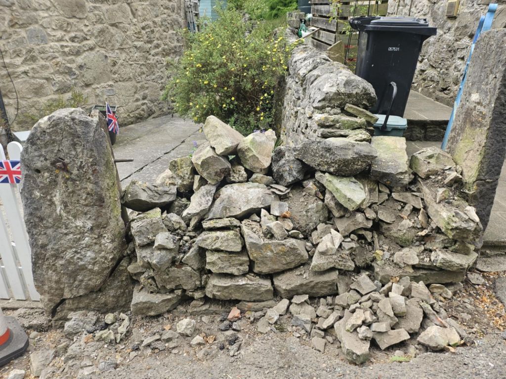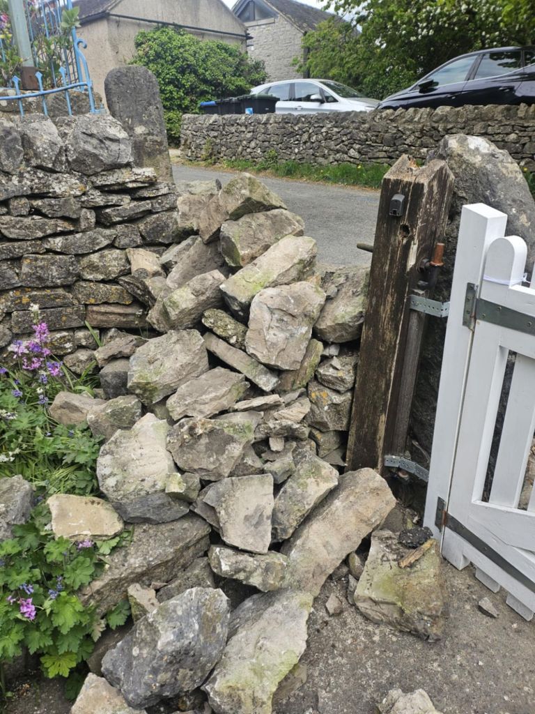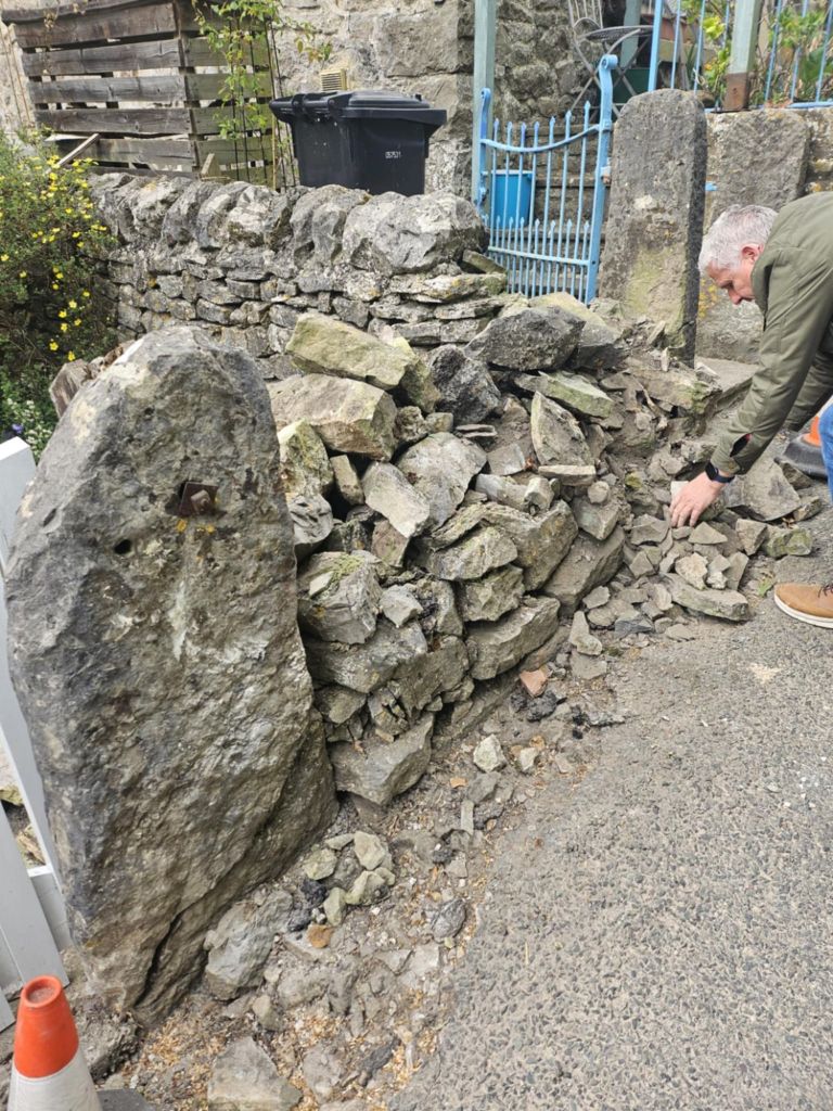 We have received the following from Margaret Wood….Someone has hit our wall while we were out and also caught my mums car. It was this morning (Monday) some time between 10 and 12. The stone gatepost is the same one that is on a postcard Denis has dated 1910 and it now has a massive crack in it, so sad. If anyone saw, or heard anything please contact Margaret on 390531.