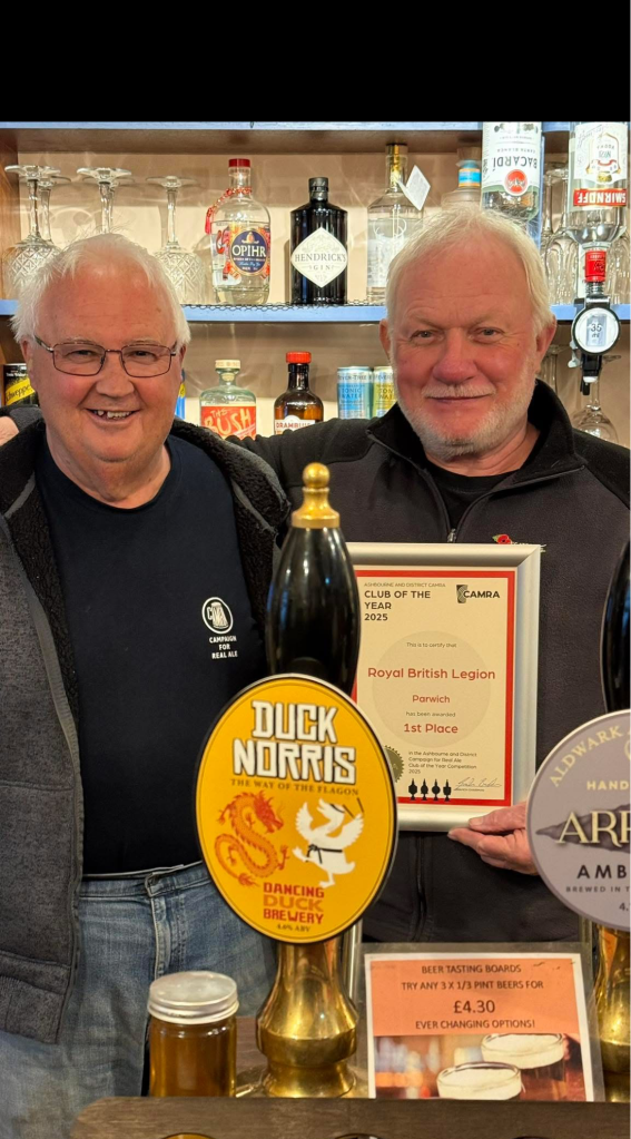 Congratulations to Alan and his team at the Royal British Legion Parwich, on achieving an incredible 4th consecutive CAMRA Ashbourne & District Club of the Year 2025. Voted for by CAMRA members and presented by Graham Burke, Chairman. Alan and all his staff work tirelessly to make the club a centrepiece of this small community and always give a warm welcome to both members and visitors alike.