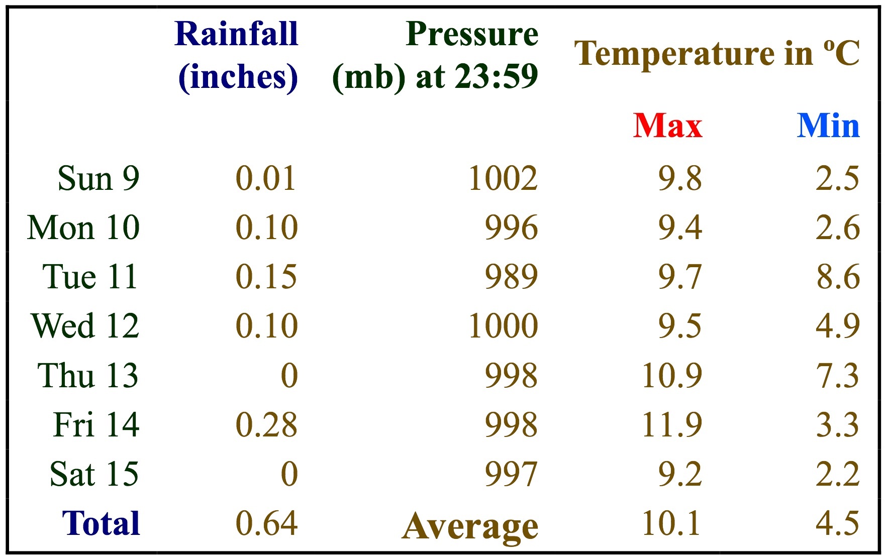Our Weatherman in the Village says:
